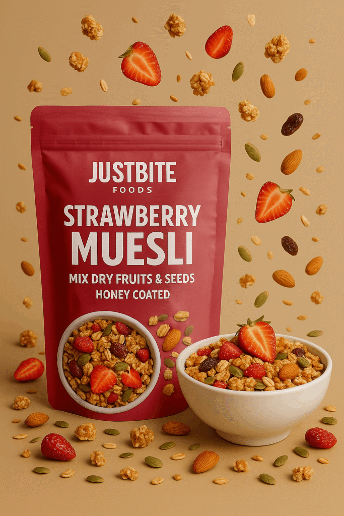 At Just Bite Foods, we craft premium-quality muesli using clean, wholesome ingredients – perfect for brands, retailers, food service providers, and importers who value quality and consistency.