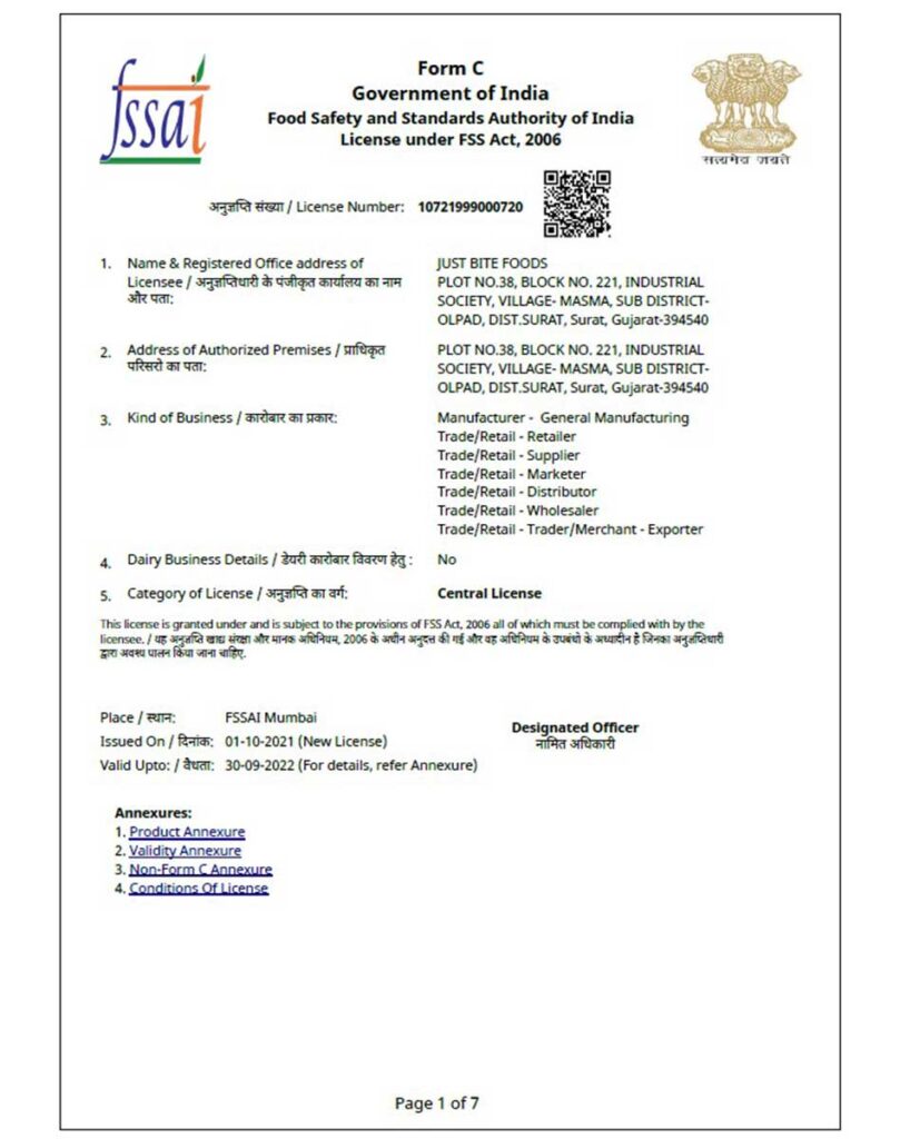 We, Just Bite Foods are a leading manufacturing expert, working from the best location of Surat (Gujarat, India).